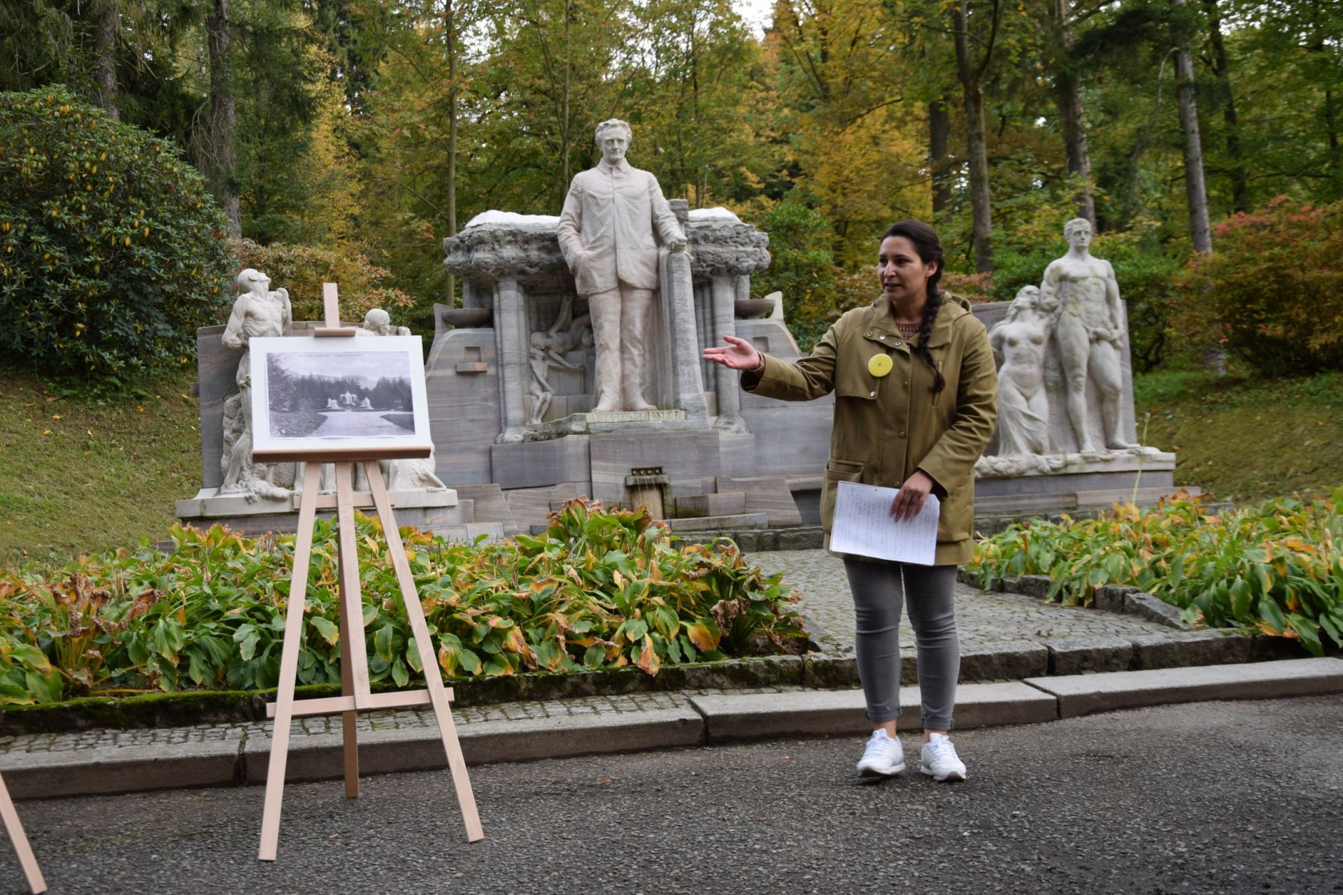 Den architektury opět v Jeseníku04.10.2019 Den architektury 2019 proběhl v Jeseníku ve znamení velkých výročí: 100 let Bauhausu 220 let Priessnitze 200 let Regenhart & Raymann Jesenické vydání tradiční akce se uskutečnilo ve dnech 3. a 4. října. Programem provázela městská architektka Jeseníku Sara Al-Wahaishi. Ve čtvrtek 3. října byla veřejnosti opět otevřena budova bývalé knihovny Vincenze Priessnitze na Lipovské ulici, toho času Kokon vzniklý v rámci festivalu V centru / Im zentrum. Od 15 hodin zájemci navštívili výstavu mnichovského fotografa Henninga Koepkeho, představující jeho tvorbu věnovanou výročí Bauhausu v Brně. Fotomotivy dokládaly, že brněnská oblast byla ve dvacátých a na počátku třicátých let 20. století přinejmenším stejně progresivní jako Bauhaus směrem dál na západ. Ne náhodou stojí jedno z nejproslulejších děl Ludwiga Miese v Brně: vila Tugendhat. V rámci výstavy byly prezentovány mj. stavby architektů, kteří z okolí Brna pocházeli a také zde pracovali, jako např. Bohuslava Fuchse. Večer se v Kokonu debatovalo o možnostech oživování veřejného prostoru. Své aktivity prezentovaly Kateřina Stará z Landscape festivalu, Zdeňka Morávková zastupující festival V centru / Im zentrum (a jeho již 4 proběhlé ročníky), v zastoupení nemocí indisponovaný plzeňský spolek k světu. – za pozornost stojí především jejich oživování náplavek v Plzni – a spolek Sudetikus. Různé způsoby oživování veřejných míst na různé úrovni a pestrost realizací skýtaly mnoho možností pro podnětnou debatu. Program Dne architektury pokračoval v pátek 4. října. Jedno ze zmíněných výročí – 220 let od narození proslulého přírodního léčitele Vincenze Priessnitze – bylo připomenuto ve Smetanových sadech u jeho pomníku od sochaře Josefa Obetha. Městská architekta Sara Al-Wahaishi prezentovala zajímavosti z historie pomníku i života jeho autora. Pomník byl odhalen 25. července 1909 a je bezesporu nejznámějším dílem terezínského rodáka (část obce Mikulovice). Od pomníku jesenického velikána (pomyslně i doslova, vzhledem k rozměrům sochy) se vypravil průvod na vycházku po stopách textilních rodů Regenhartů a Raymannů. Důležitým mezníkem v historii obou rodů i textilního průmyslu na Jesenicku bylo spojení obou dynastií v roce 1819. První zastávkou byla vila Regenhart na ulici Josefa Hory, vycházka byla zakončena v továrním komplexu na soutoku Bělé a Staříče, později Moravolen, nyní Woox. K vidění byl i 3D model továrního areálu v době jeho největší slávy. Vycházku vedla městská architektka Sara Al-Wahaishi ve spolupráci s historikem Vlastivědného muzea Jesenicka Janem Petráskem. Akci uspořádaly Spolek Sudetikus a Město Jeseník ve spolupráci se spolkem Kruh, z. s. Foto: Adéla Raifová | |