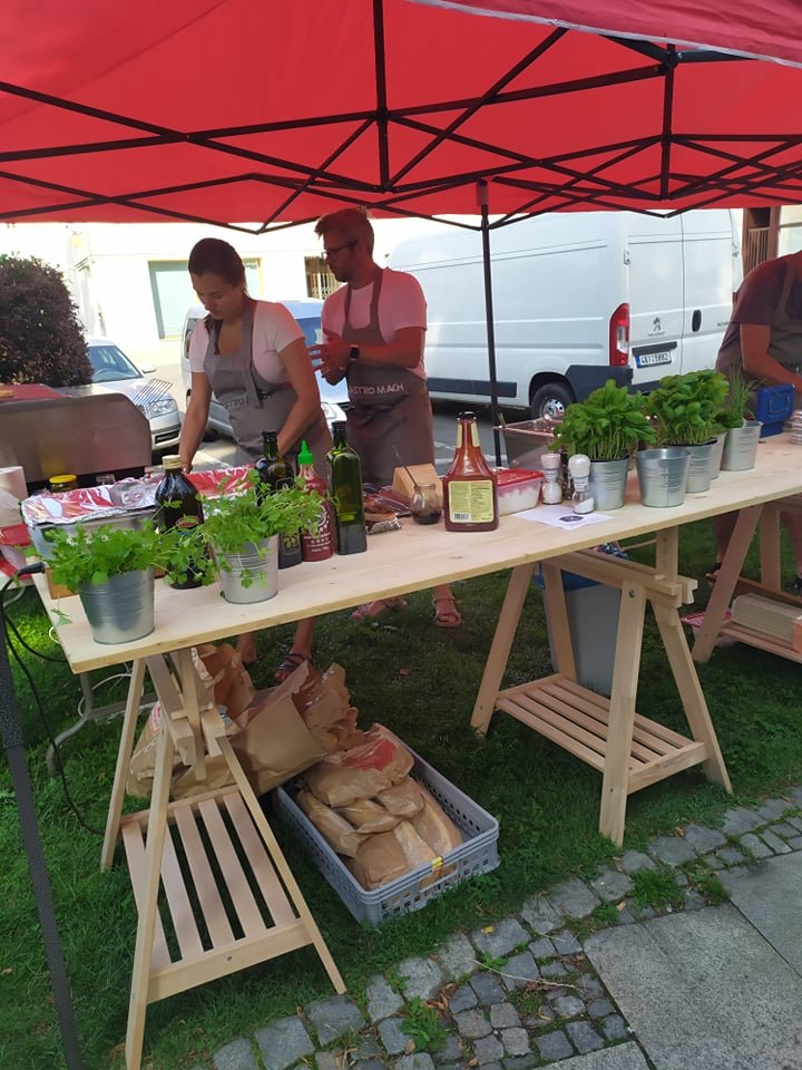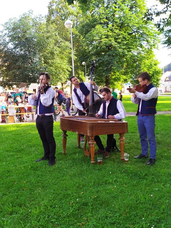 Letní slavnost s Restaurant Day a dílnou výroby lampiónů neměla chybu!15.08.2020 V sobotu 15.8.2020 náměstí Svobody praskalo ve švech! Od 17h se zde rozezněly tóny cimbálové muziky a zavoněly dobroty jesenických kuchařů a pekařů... Letní slavnost byla první společně uspořádanou akcí MKZ/Kultura v Jeseníku, spolku Sudetikus a Tančírny v Račím údolí. MKZ zařídilo cimbálovou muziku Grunt z Háje ve Slezsku, Zdeňka Morávková z Tančírny připravila tvořivou dílnu, ve které se vyráběly lampióny, a spolek zorganizoval tradiční letní Restaurant Day. Atmosféra byla skvělá, naplněná pohodou, příjemnou hudbou a spoustou milých setkání s lidmi, které jsme některé neviděli chvíli, některé už dlouho. Mohli jste ochutnat Jesenické čokoládové lanýže od Martina Pralinka, které se v ústech jen rozplývaly, dorty a lahodné zákusky od Zápisníku na sladké, makronky a nugát od Madamme Griotte, pomerančové palačinky od Pop Up restaurace Se Sparťanem, skvělé italské opečené bruschetty nebo grilované makrely, zázvorovou nebo borůvkovou limonádu a mnoho dalšího! Restaurant Day se na náměstí Svobody konal poprvé odpoledne kvůli Letní slavnosti. Ale zdá se, že to byla dobrá volba! Lidé nespěchají vařit rodině oběd nebo za příbuznými, je podvečer a mají více času. Také kuchaři mají více času se připravit, nemusí všechno rychle pobalit ráno, když s vařením skončili pozdě v noci. Takže příště zase odpoledne? Možná, že ano - budeme rádi za vaše názory a komentáře. Letní slavnost s Restaurant Day a cimbálovkou Grunt zpříjemnila sobotní podvečer mnoha návštěvníkům na náměstí Svobody v Jeseníku. Nakonec přidáváme citaci jedné z návštěvnic, se kterou souhlasíme: "Hezké to bylo, od všeho trochu, pivo, makrely, dortíčky... Ta muzika tomu dodala atmosféru, taková muzika by tu měla být častějc!" Za fotky děkujeme Lubomíře Macháčkové, Marcele Vaňkové a Janě Jelínkové! | |