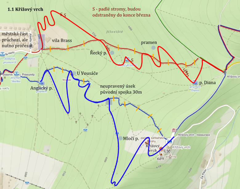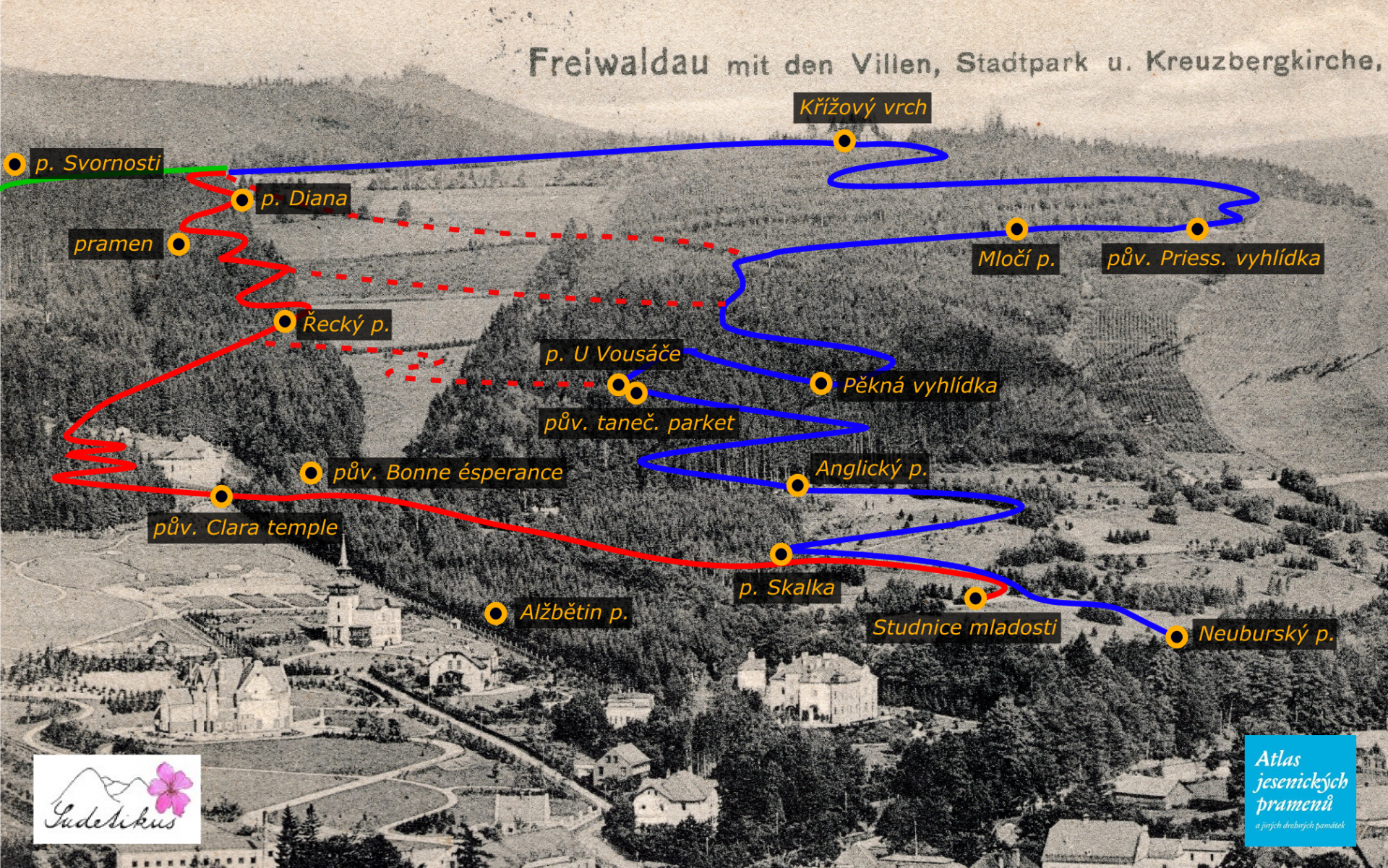 Vycházka po historických stezkách na Křížový vrch08.05.2021 Křížovým vrchem kdysi procházelo několik lesních promenád. Propojovaly prameny, vyhlídky, odpočívadla. „U Vousáče“ byste našli i taneční parket! Cílem procházky v sobotu 8. května pod vedením Lukáše Abta bylo projít jednu z variant původních stezek, jež je i po více než sto letech na mnoha místech ve velice dobrém stavu. Stezky zbudované na přelomu uplynulých století a zmiňované i významným vídeňským architektem Eugenem Fassbendrem byly pohodlné, široké a stoupání do prudkých svahů bylo řešeno serpentinami v příjemném sklonu. I vyšňořené dámy v širokých sukních si tak mohli vyrazit na výlet. Území si rozhodně nezadalo s promenádami na Gräfenberku. Značná část stezek byla postupem doby poničena nešetrným zacházením, především při těžbě. Podél cest jsme viděli několik rozbitých pramenů, kde voda neteče z chrliče, ale podmáčí široké okolí. Často jen díky historickým obrázkům, které byly na vycházce k dispozici, a troše fantazie mohli návštěvníci vystopovat zbytky původní krásy. Poměrně zdařile se podařilo při výšlapu ukázat, jak to v době největšího rozkvětu v “lesoparku” pod Křížovým vrchem vypadalo. Zaznělo přání, aby tato maličkost byla novým začátkem pro širší obnovu těchto stezek. Ne však tak, jak tomu bylo při poslední obnově městem Jeseník v roce 2002, kdy stezky velice záhy upadly v zapomnění. Snad by mohlo pomoci přesunutí necitlivě vedených současných turistických značek, které nejzajímavější partie tohoto lesa obchází. Jako příklad dobrovolnictví bylo zmíněno zapojení pracovníků místní firmy Naturfyt-Bio, v rámci jejichž pracovní doby několik míst v okolním lese doznalo chvályhodné proměny. Snad i tento počin bude inspirací pro další regionální firmy, kterým jde o zvelebení jejich blízkého okolí. Proto jsme se rozhodli vyhlásit brigádu na sobotu 24. července se srazem na parkovišti na Křížovém vrchu v 9:00 hod. Budeme upravovat historické stezky, které povedou až na Zlatý Chlum. Bližší informace pak na tel. 724 448 798. Děkujeme za účast i zástupcům města, odboru životního prostředí a technických služeb, pro které bylo toto setkání, jak doufáme, pomyslným podkladem pro případné zapojení se do obnovy přilehlých lesních ploch. Třeba se podaří příště oslovit i zástupce ALSOLu, jejichž územím velká část stezek prochází. Vyhlašujeme soutěž na název stezky. Své nápady pište na email spolek@sudetikus.cz. | |