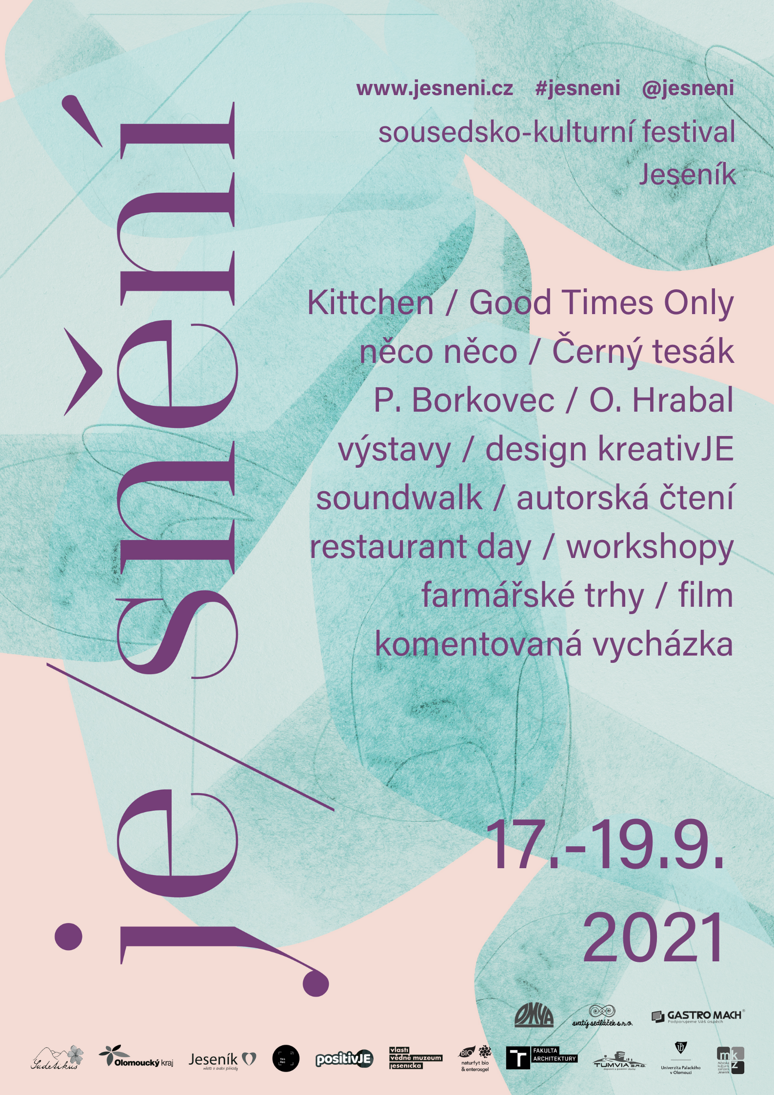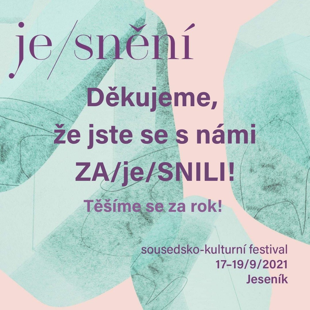 Festival Jesnění25.09.2021 Milí návštěvníci a festivaloví hosté, MOC VÁM DĚKUJEME, že jste se spolu s námi zaJesnili! První ročník našeho festivalu byl rozmanitý a již za chvíli se budete moci podívat už na další fotky, které vám nabídneme z celého víkendu z pečlivého objektivu Foto Zori a dále od Lukáše Bobčíka a Zuca von Grafenberg. Je na místě poděkovat také nespočtu hostů, kterým jsme vděční za návštěvu a nadšení, jež Jeseníku projevili - a těšíme se, že jsme se v Jeseníku neviděli naposled! Z celého srdce jsme vděční také vám, kteří jste nás podpořili prostřednictvím sbírky na Donio.cz a přejeme si, aby vám vaše odměny dělaly spoustu radosti - nebo ať brzy dělají! Velké poděkování patří sponzorům festivalu, společnostem Naturfyt BIO, GASTRO MACH, Svatý Sedláček - konopné produkty a Omya CZ s.r.o., také Městu Jeseník a Olomouckému kraji, i dalším, kteří nás jakkoliv podpořili (Kultura v Jeseníku, vyrobimweb.cz, REC Yes, Vlastivědné muzeum Jesenicka a další). Mockrát děkujeme také všem médiím, která nám poskytla prostor, díky němuž jsme měli možnost oslovit skoro celou zemi (Full Moon Magazine...). Moc si vaší podpory i zájmu vážíme a věříme, že jste návštěvy Jesnění 2021 rozhodně nelitovali! Těšíme se také na příští ročník festivalu a to, že se Jesnění postupně stane součástí Jesenicka a české kulturní mapy! A to vše jen DÍKY VÁM! Děkujeme vám, že jste byli součástí toho, jak se náš odvážný a zdánlivě bláznivý sen stal skutečností. Ke stažení