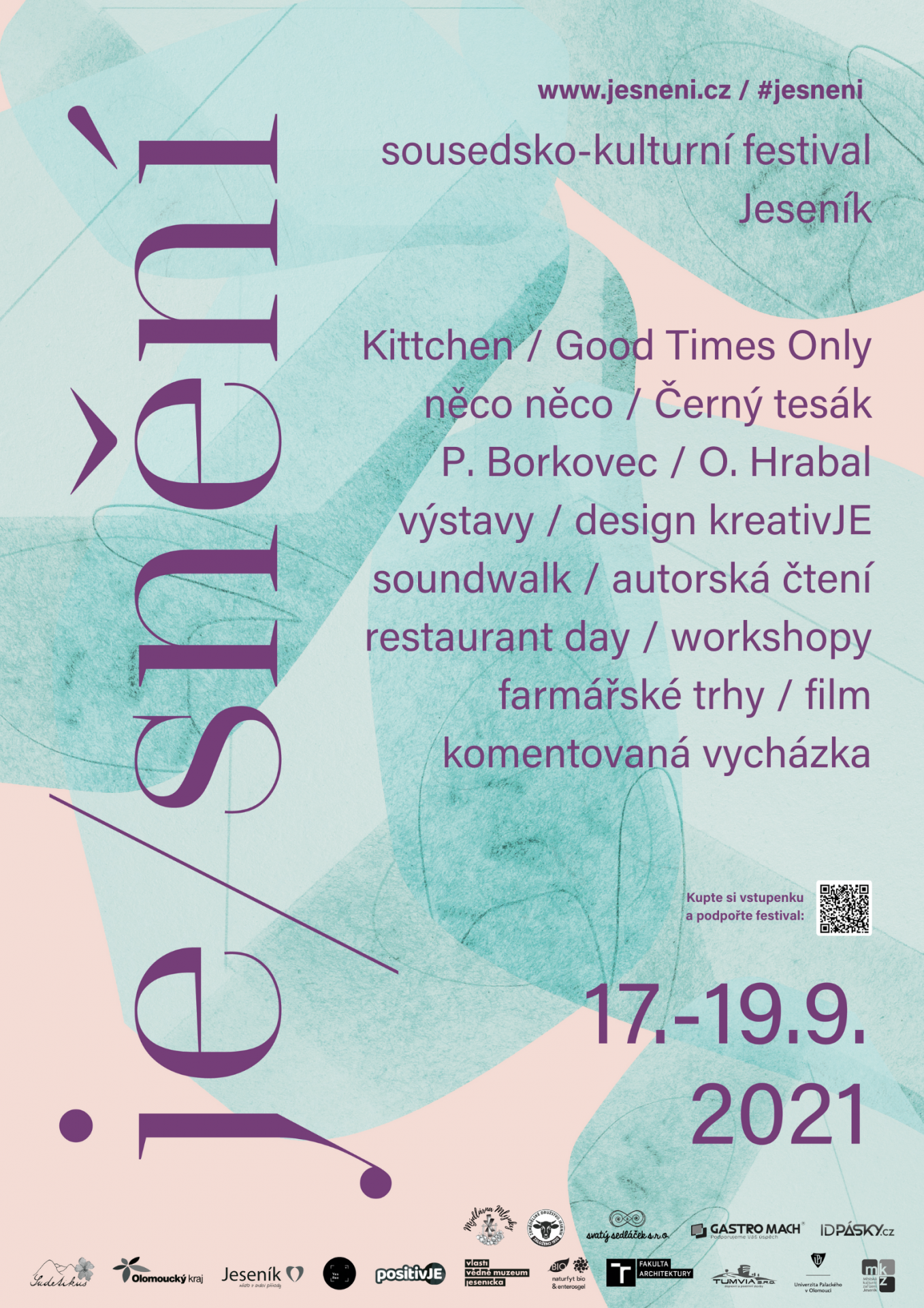 Ke stažení | Dokument Adobe Acrobat | Velikost souboru: 7080 Kb | | Kam dál | Sousedsko-kulturní festival Jesnění v Jeseníku 7 – 10. září Třetí ročník festivalu Jesnění znamená 4 dny nabité kulturou i komunitním duchem v Jeseníku. Ožijí jesenická náměstí, parky, kavárny i historické objekty. Součástí budou koncerty, divadlo, tanec, projekce, besedy, tvořivé dílny, autorská čtení, pouliční slavnost, Restaurant Day a mnoho dalšího! Je ... (více) | | | Konec léta rozjasní festival Jesnění O víkendu 17. - 19. 9. se koná 1. ročník Jesnění, sousedsko-kulturního festivalu, jehož cílem