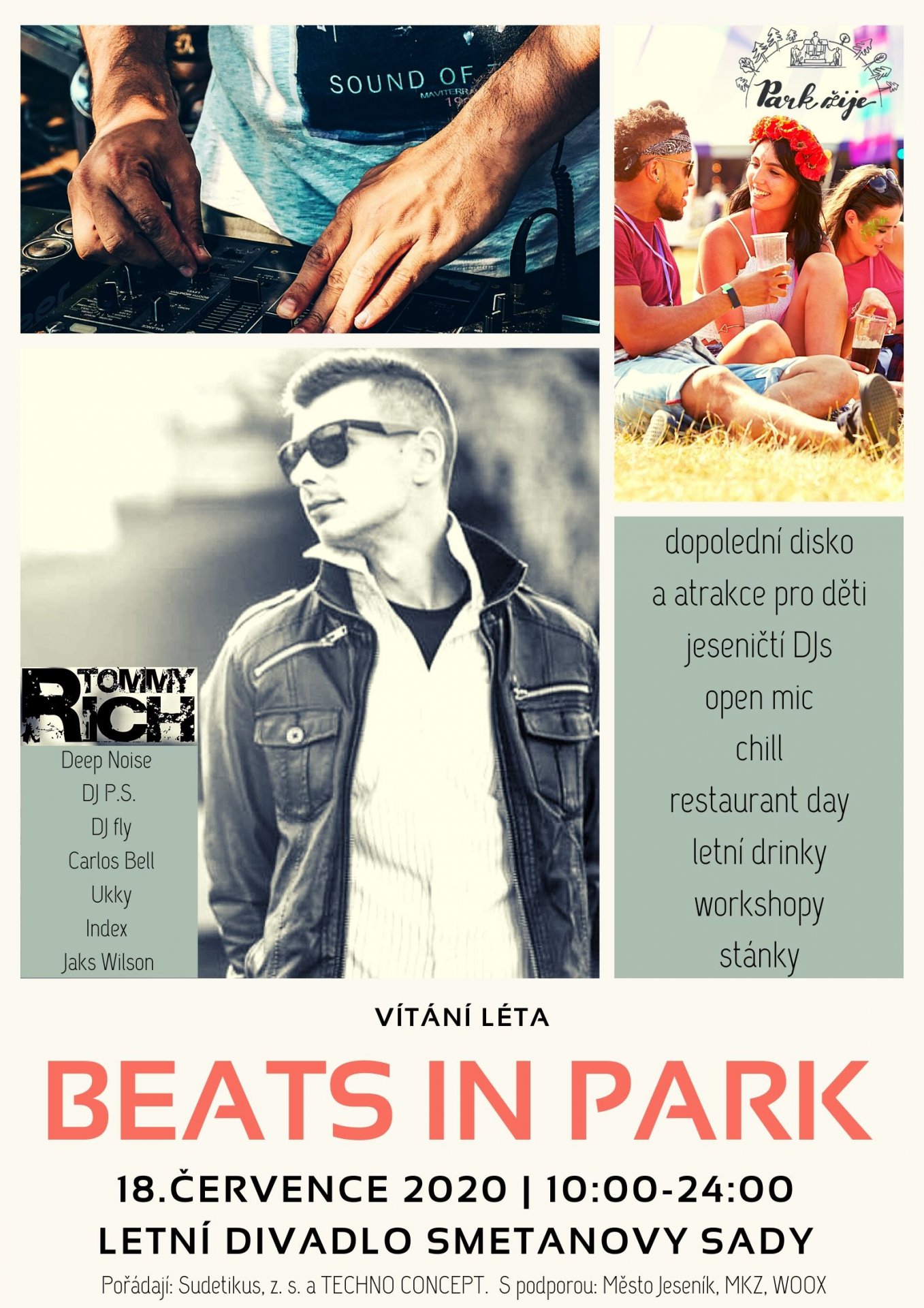 Beats in Park je Festival elektronické hudby v parku v Jeseníku spolu s pop-up restauracemi z Restaurant Day Jeseník, stánky, atrakcemi, malováním henou, skákacím hradem a skluzavkou a dalšími překvápky!